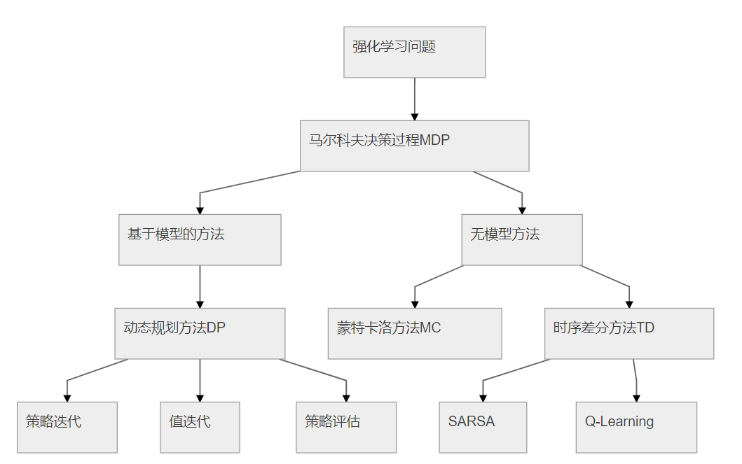 强化学习任务包括量大主体:智能体(Agent)和环境(Environment),智能体通过与环境交互获得奖励,来学习相应的策略。强化学习有三种基本方法:动图规划、蒙特卡洛方法和时序差分方法,如下框图所示:
